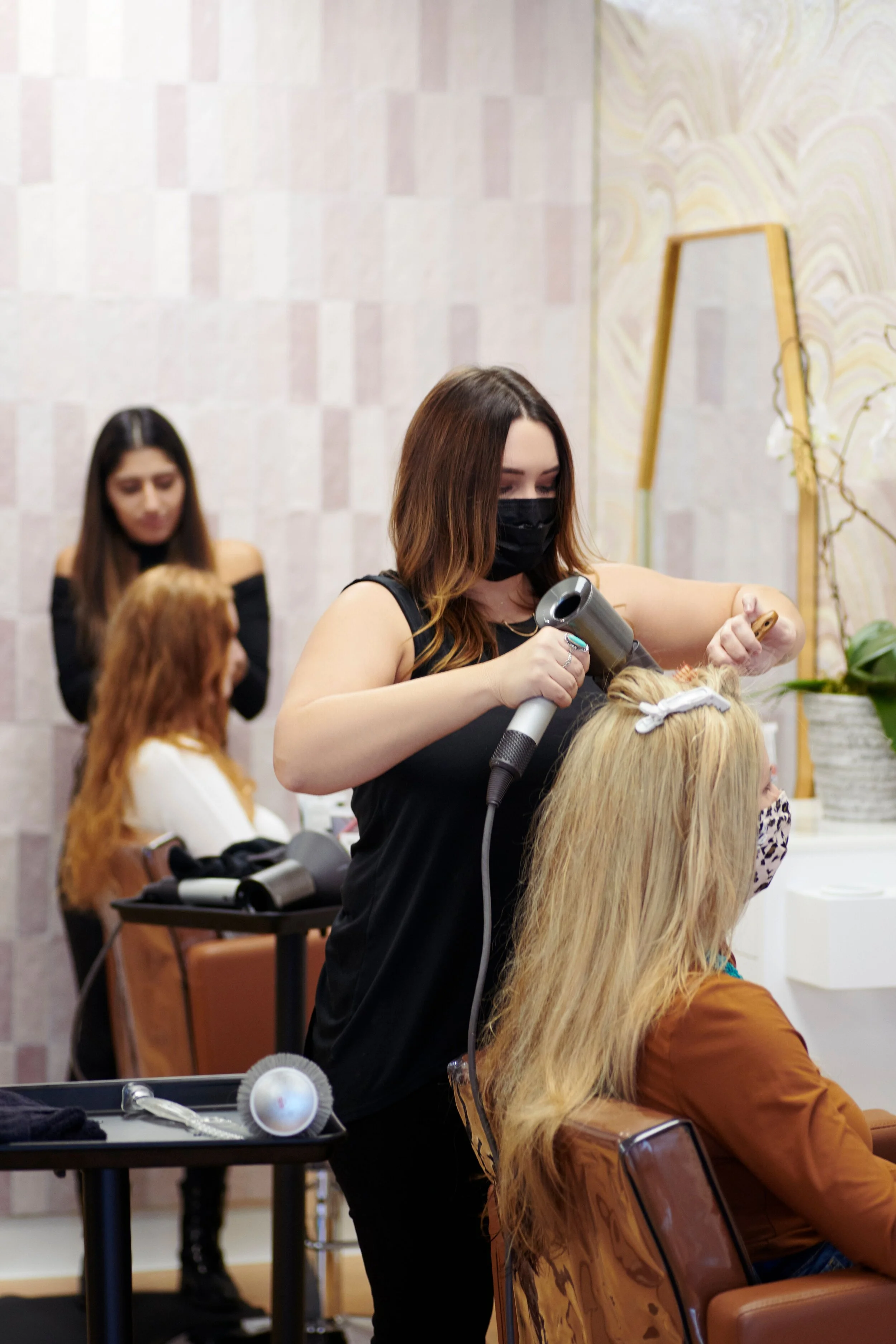 Blow Out - Hair styled with a round brush during the blow drying process.